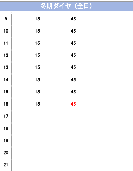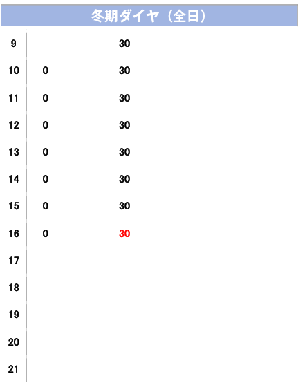 - 12月8日(月)~14日(日)、20日(土)~2026年1月4日(日)の期間、冬期ダイヤで運行します。